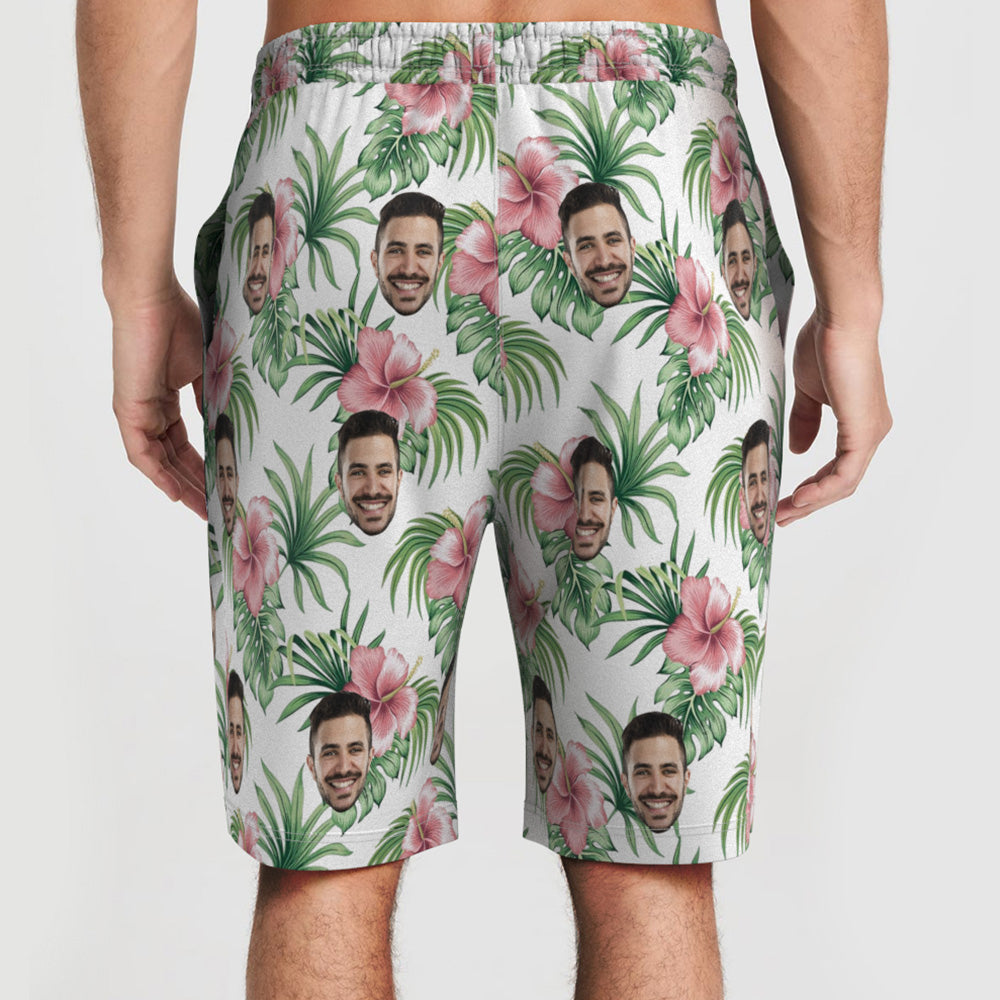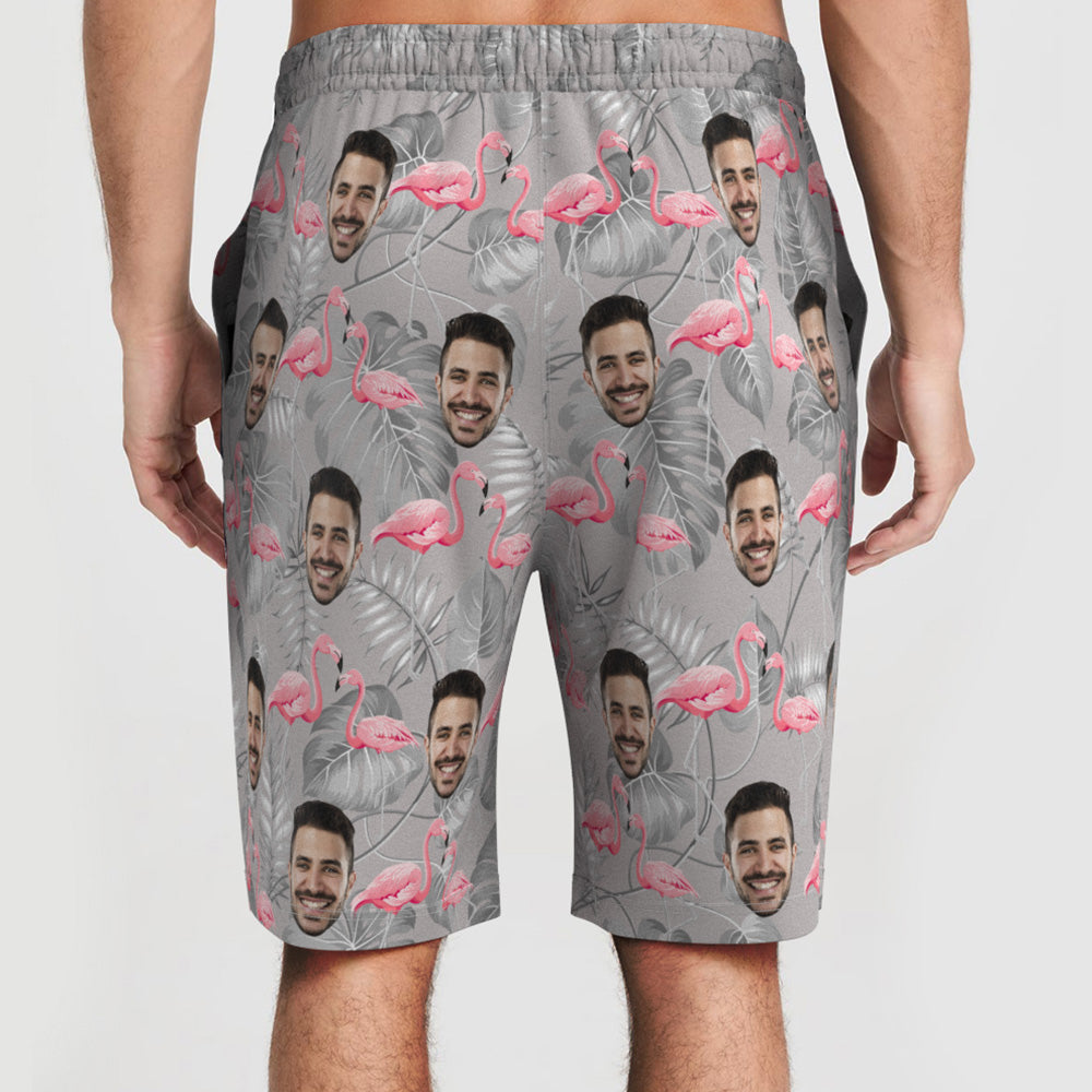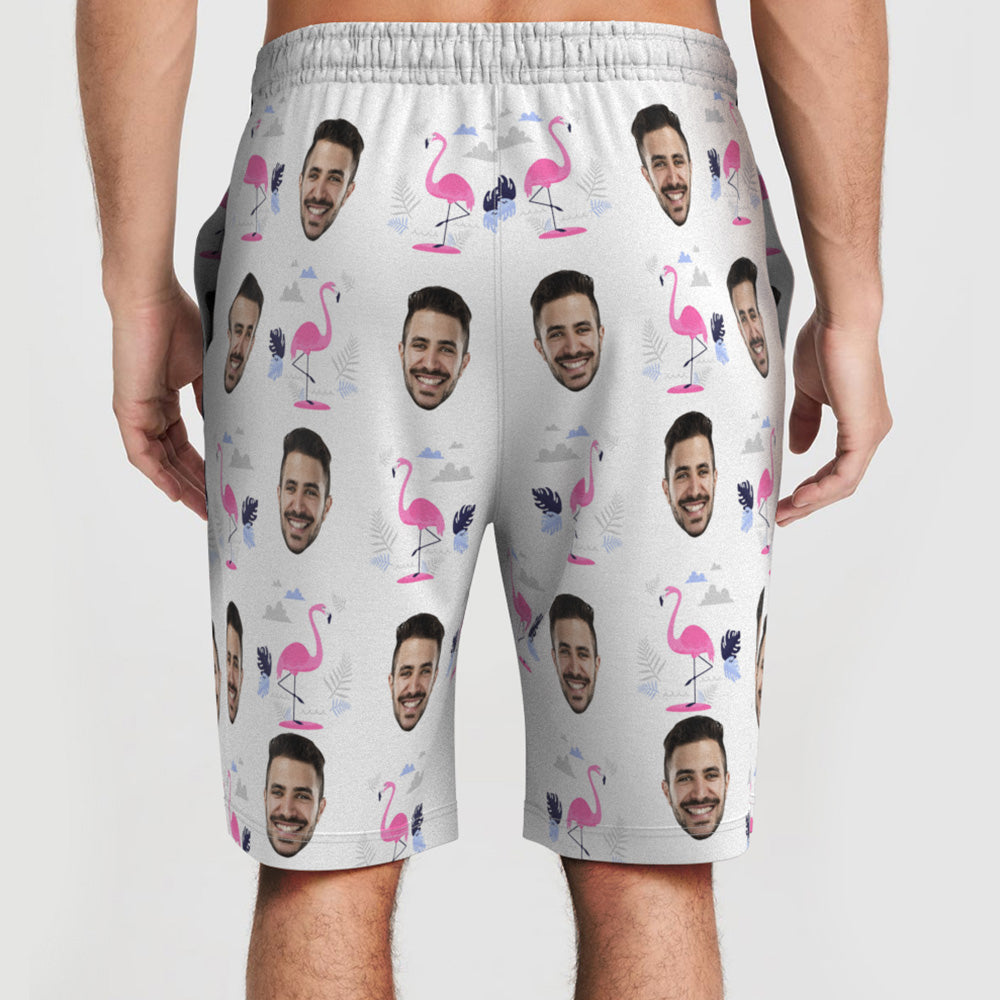 Custom Face Beach Short Personalised Photo Casual Resort Flamingo Print Swim Trunks Vacation Party Gift