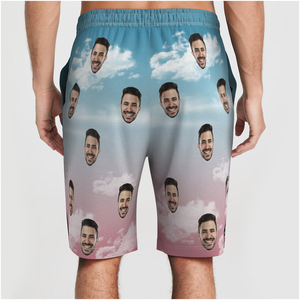 Put any face on the beach trunks, No matter where you go, you are the one who is unique !Fabric: 95% polyester, 5% spandex.Features four-way stretch f...