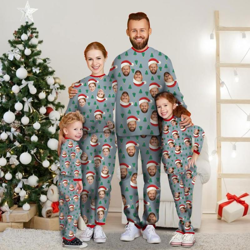 Christmas Gift Custom Family Photo Long Sleeve Pajamas Matching Set
