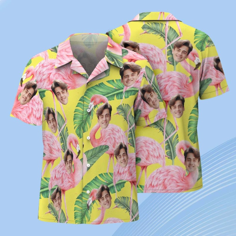Home / Colorful Flamingo Aloha Beach Shirt Custom Face Hawaiian Shirts - Yellow
