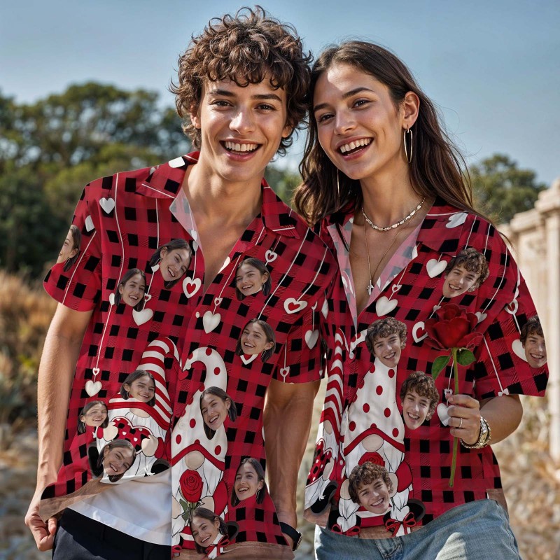 Couple Hawaiian Shirt Red Valentine Gnomes Button-down Shirt Gift For Couple