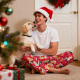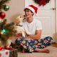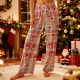 Custom Adult Pajama Pants with Pet Picture & Festive Gingerbread Plaid
