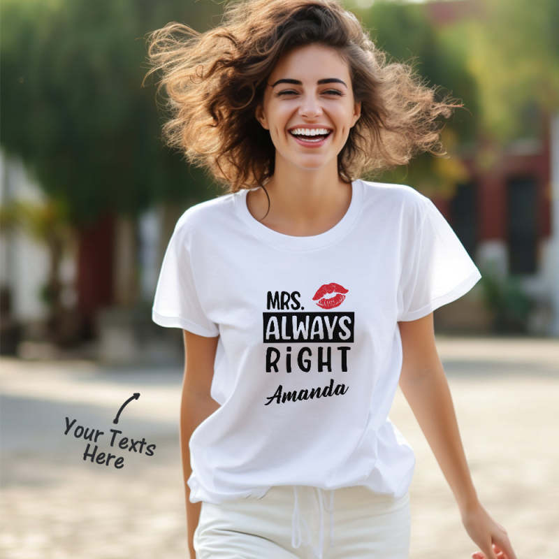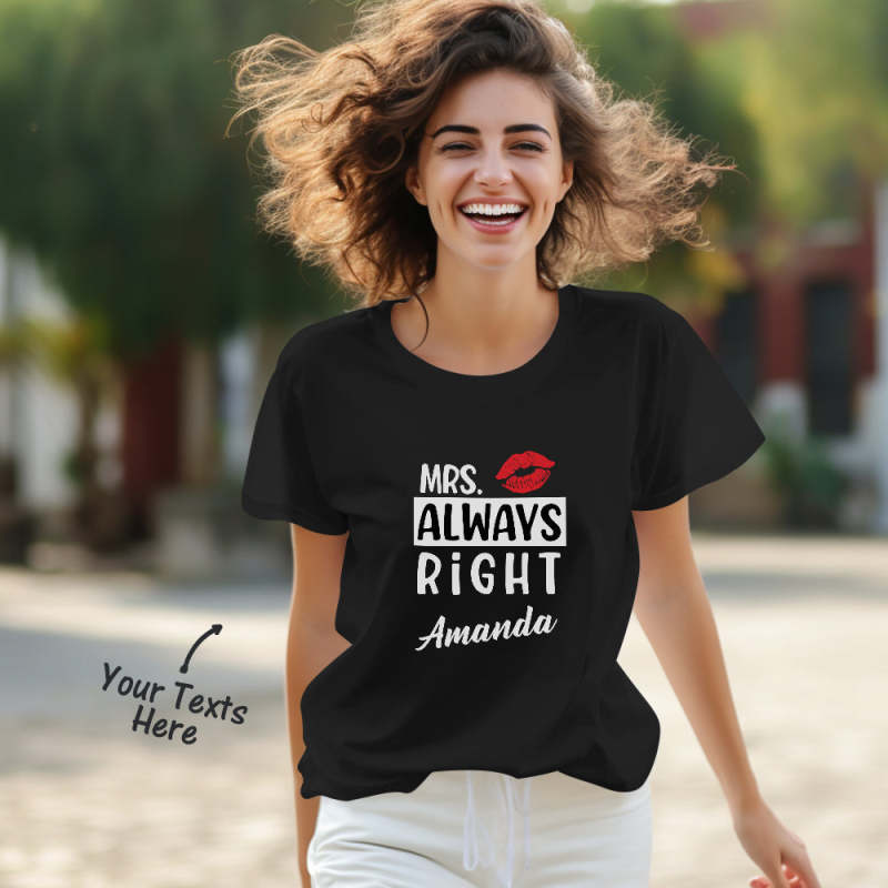 Custom Couple Matching T-shirts Mr Never Wrong and Mrs Always Right Valentine's Day Gift