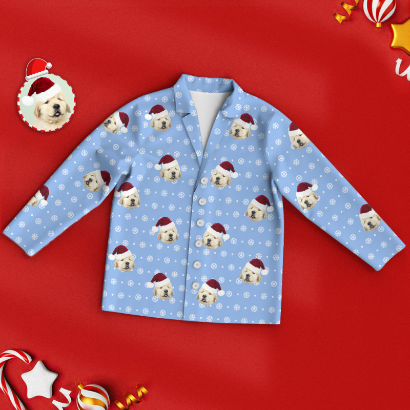 Custom Cute Pet Face Pajamas Snowflake Pajamas Christmas Gift