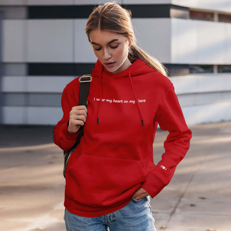 Custom Engraved Hooded sweater Heart On My Sleeve Fashion Couple Gifts