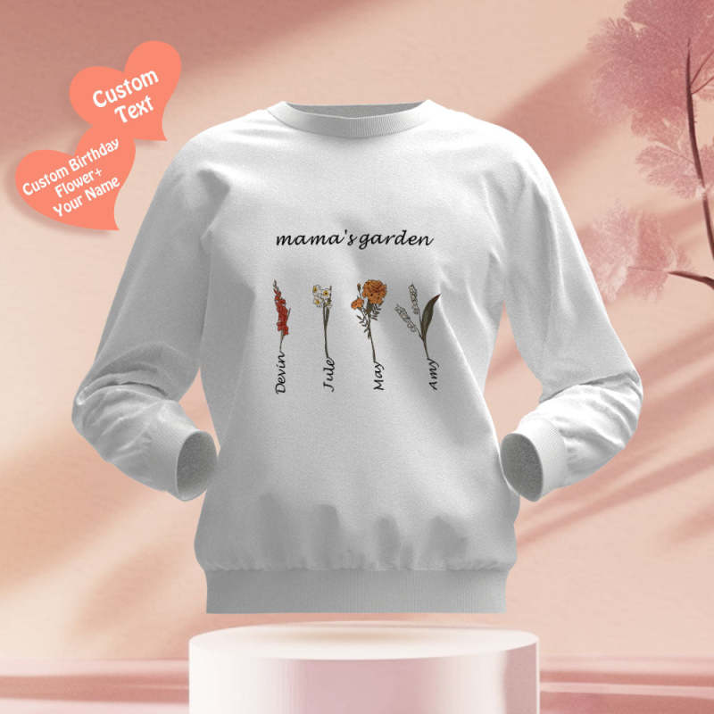 Custom Engraved Hoodie Round Neck Mama's Garden is Her Children Gifts for Mom