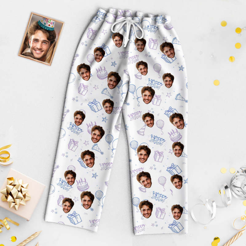 Custom Face Birthday Pajamas Personalised Photo Party Sleepwear Women Men White Pajama Set Happy Birthday