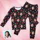 Custom Face Black Pajamas Personalised Round Neck Lips And Heart Pajamas For Women Valentine's Day Gift