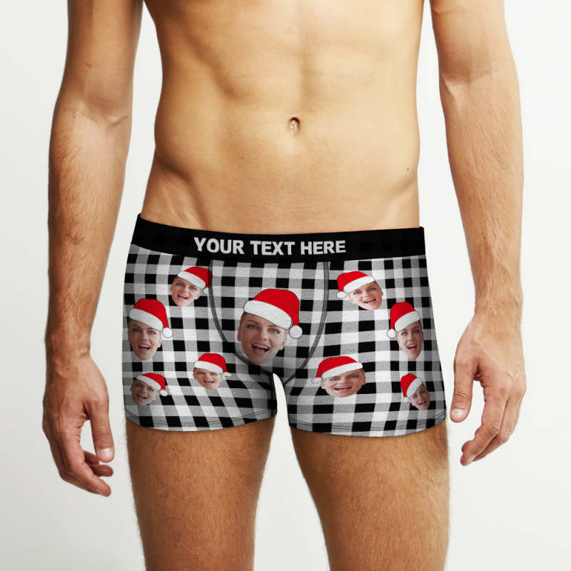 Custom Face Boxer Briefs Personalised Buffalo Plaid Underwear Christmas Gifts for Him
