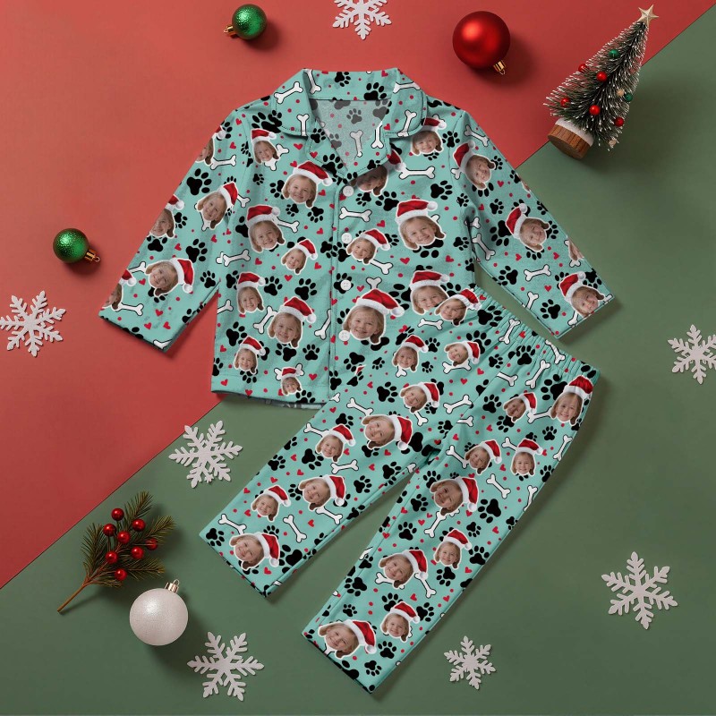Custom Face Children's Pajamas Kid's Sleepwear Christmas Gifts Family