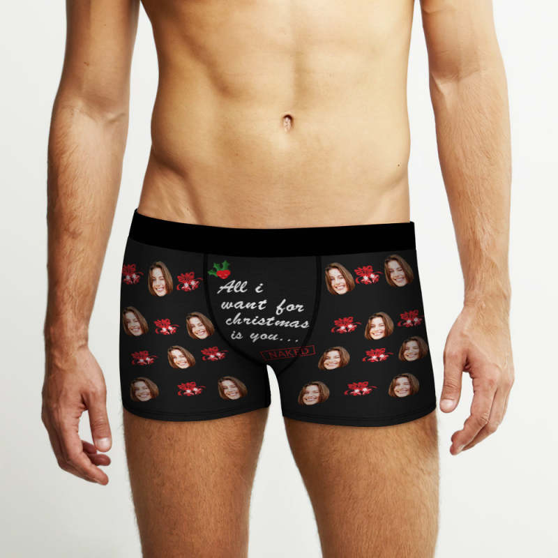 Custom Face Christmas Bells Boxers Briefs Personalised Men's Underwear Funny Briefs With Photo -All i Want for Christmas is You