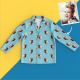• Matching shirt with notched lapels; button front.