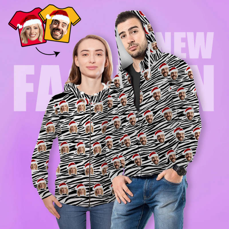 Custom Face Couples Hoodie Casual Printed Photo ZIP Hoodie For Men Women - Zebra Stripes