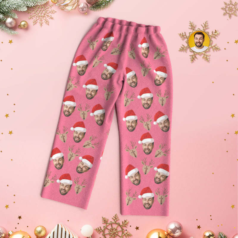 Custom Face Deer Pajamas Personalised Pink Pajamas Women Men Set Christmas Gift