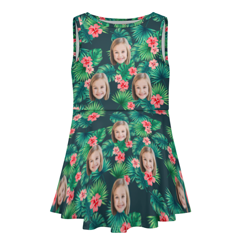 Custom Face Dress Personalised Summer Hawaiian Girls'Dresses Red Flowers