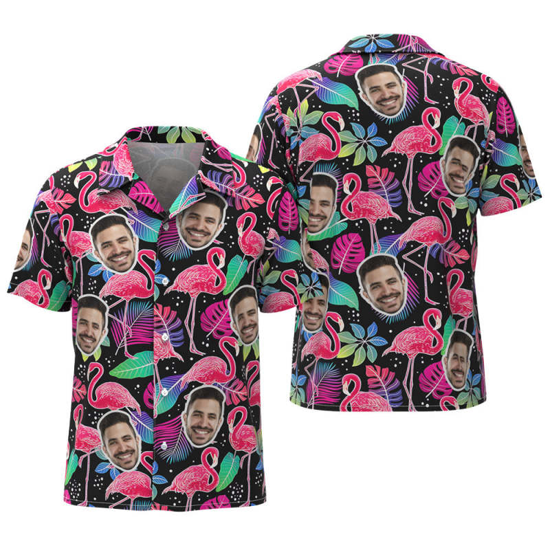 Home / Custom Face Hawaiian Shirt All Over Print Personalised Black Shirt - Flamingo