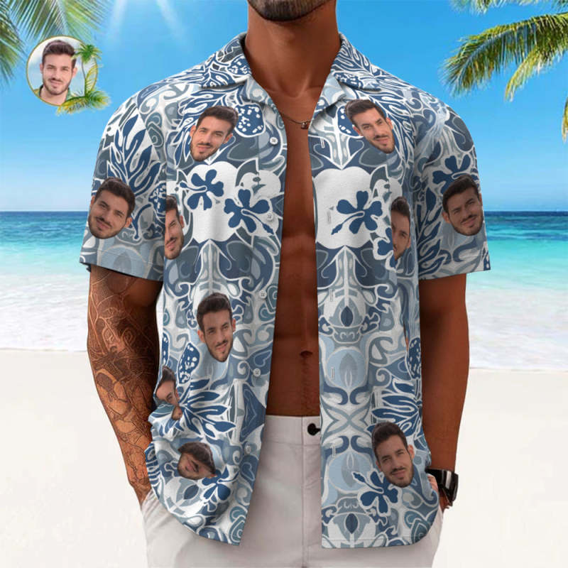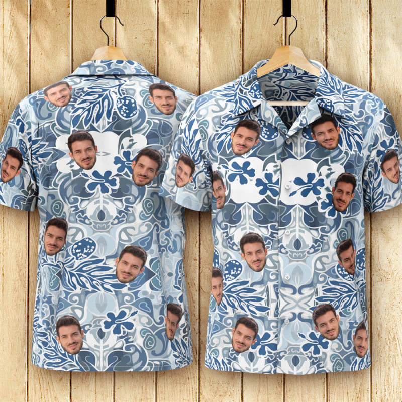 Home / Custom Face Hawaiian Shirt Men's All Over Print Aloha Shirt Gift - Blue Vintage Pattern