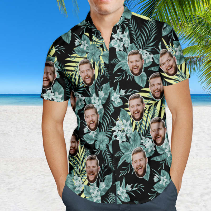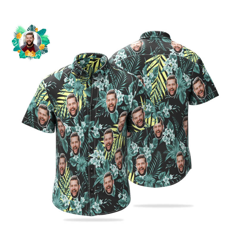 Home / Custom Face Hawaiian Shirt Personalized Photo Summer Shirts for Men - Green Flowers