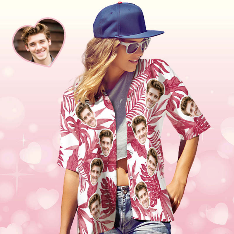 Custom Face Hawaiian Shirt Red Tropical Hibiscus Hawaiian Shirt Gift for Women