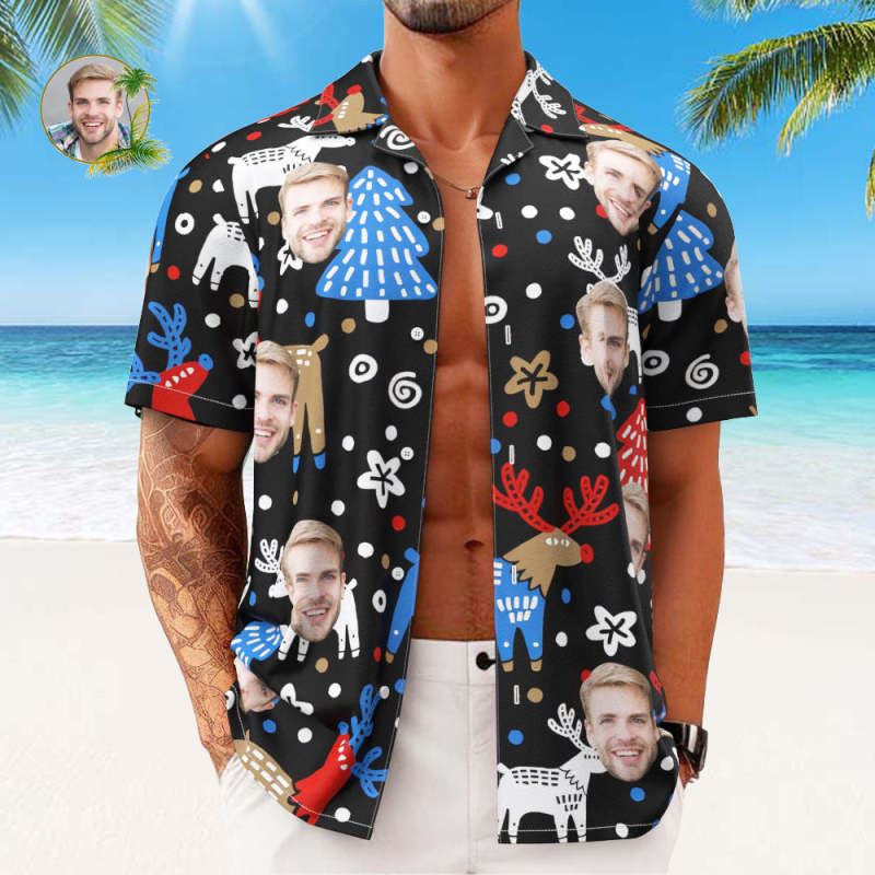 Home / Custom Face Hawaiian Shirts Personalised Photo Gift Men's Christmas Shirts Christmas Reindeer