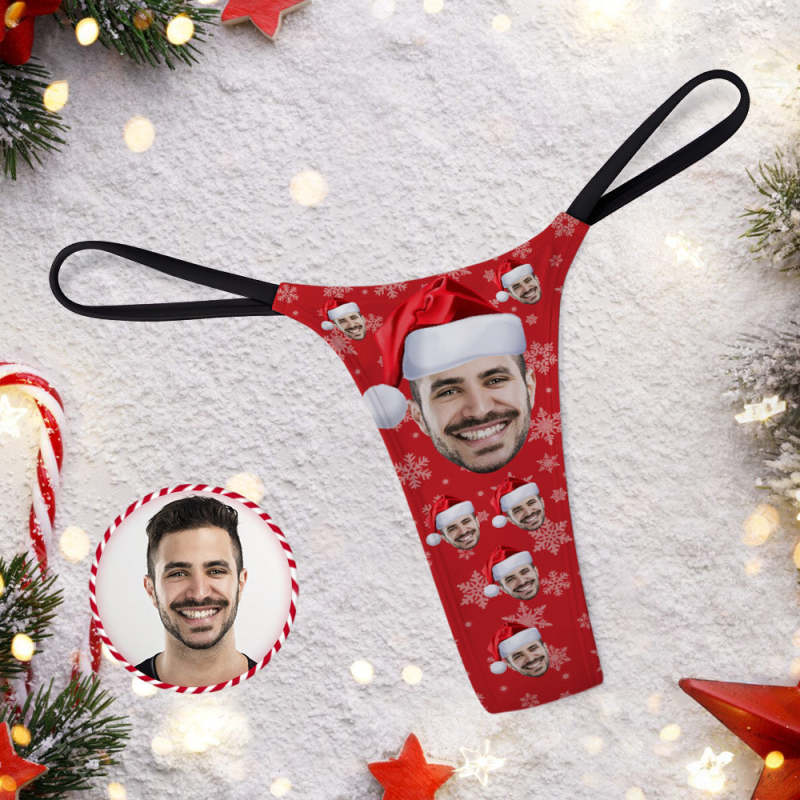 Custom Face on Women's Underwear Red Thongs Panty Christmas Gift With Big Face for Her