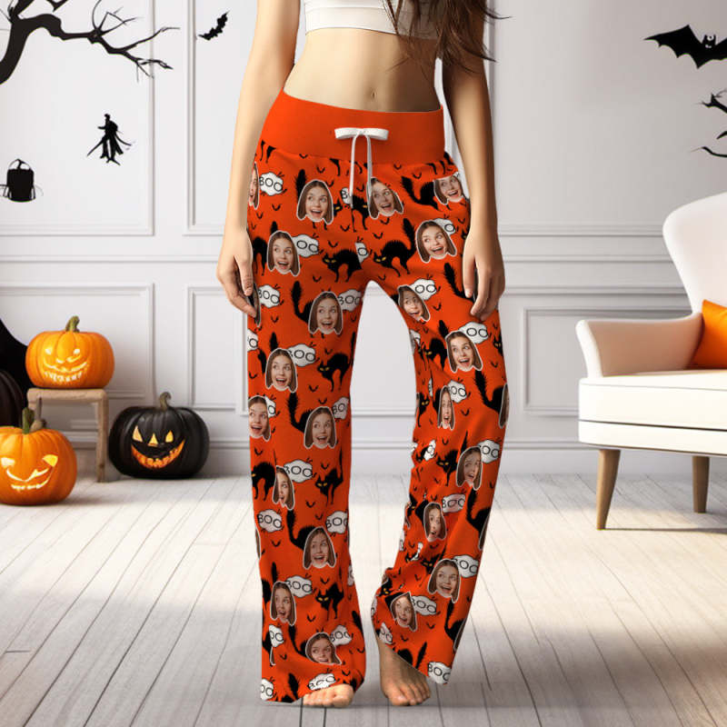 Custom Face Pants Women's Loose Wide-Leg Pants Halloween Pants