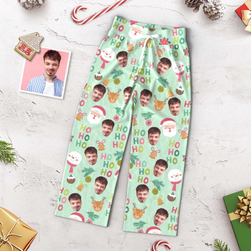 Custom Face Pants Ladie's Loose Wide-leg Pajama Pants Santa Claus and Snowman Merry Christmas