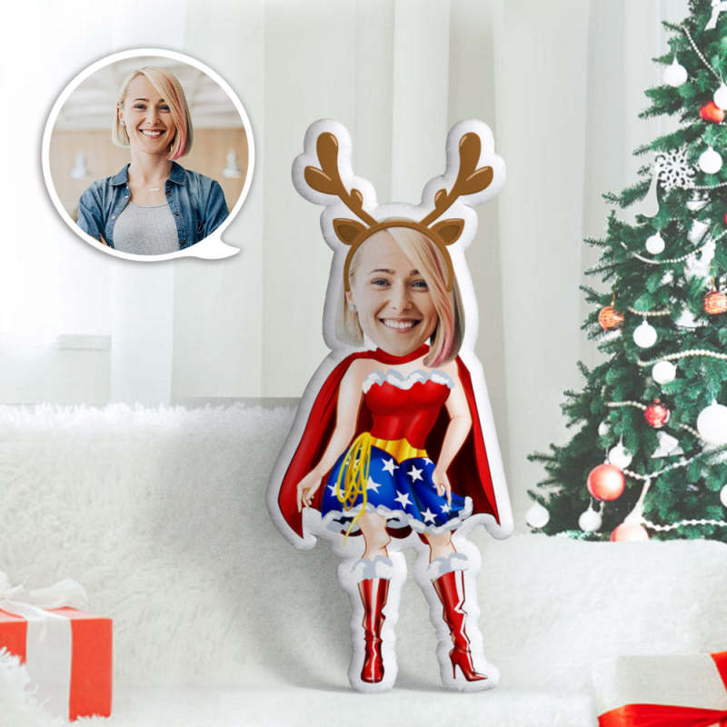 Home / Custom Face Pillow Personalized Photo Pillow Christmas Gift Reindeer Superwoman MiniMe Pillow Gifts for Chirstmas