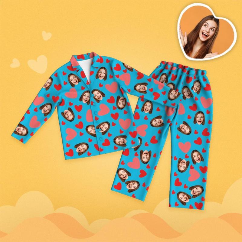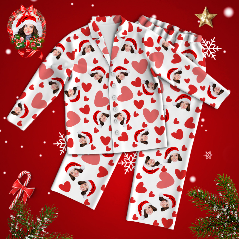 Custom Face Red Heart Printed Long Sleeve Pajamas Set Love Gifts Christmas Gift for her
