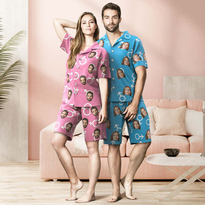 Custom Face Short Pink Sleeved Pajamas Personalised Photo Sleepwear Women Men Summer Pajamas Valentine's Day Gift