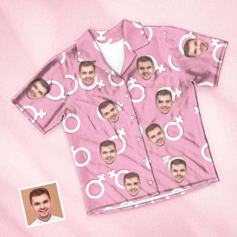 Home / Custom Face Short Pink Sleeved Pajamas Personalised Photo Sleepwear Women Men Summer Pajamas Valentine's Day Gift