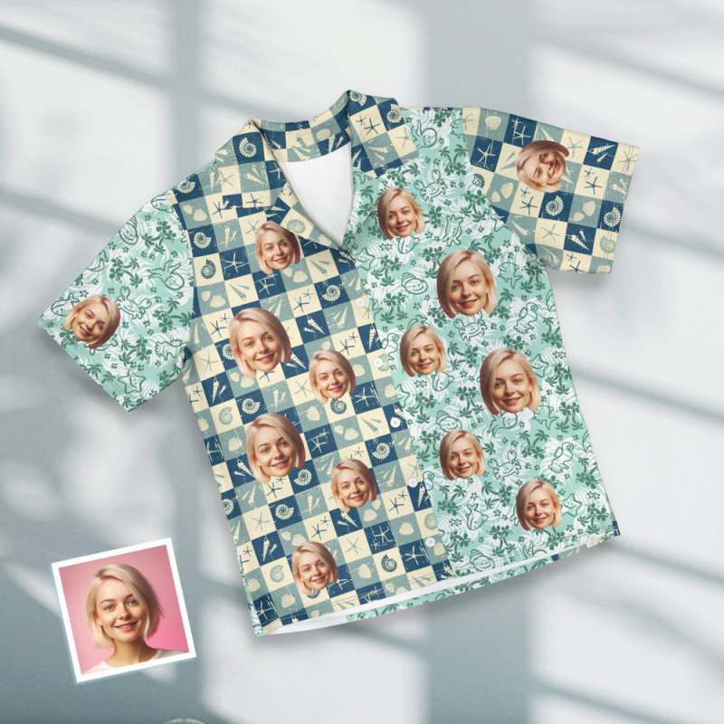 Custom Face Short Sleeve Pajamas Personalized Photo Pajama Women Men Plaid Sleepwear