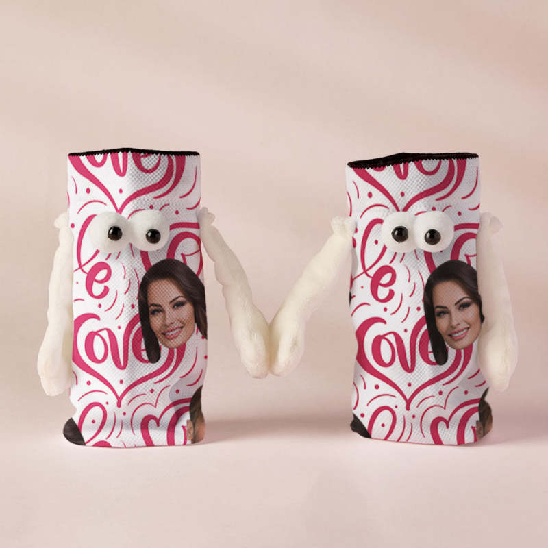 Custom Face Socks Funny Doll Mid Tube Socks Magnetic Holding Hands Socks Love Heart Valentine's Day Gifts