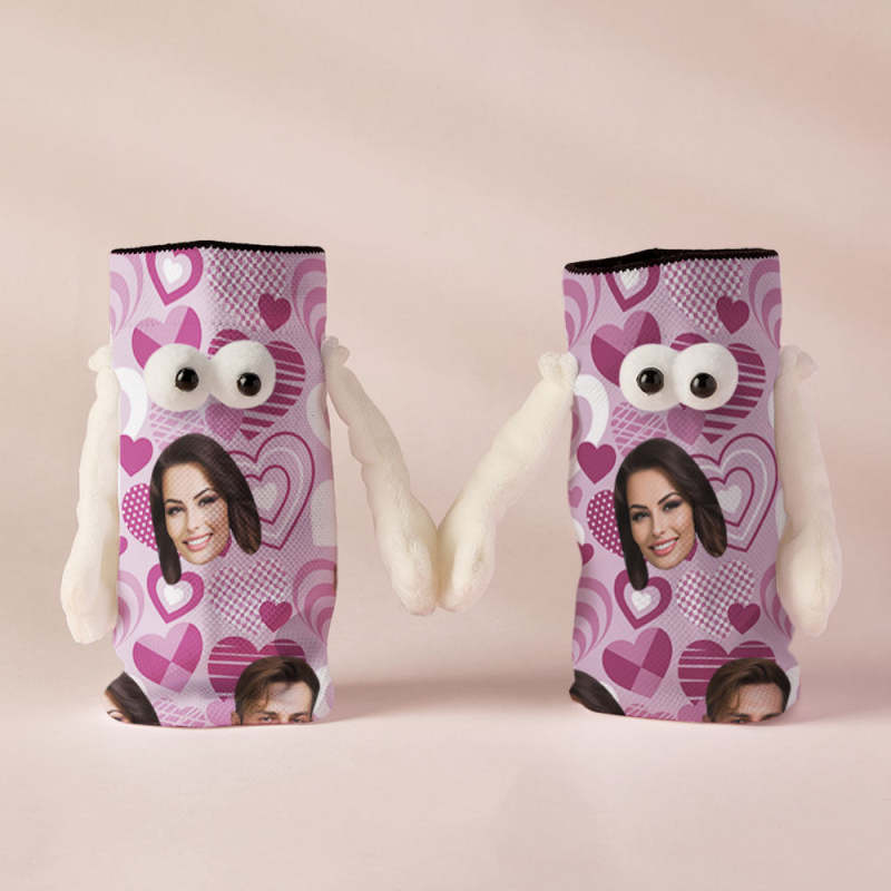 Custom Face Socks Funny Doll Mid Tube Socks Magnetic Holding Hands Socks Purple Heart Valentine's Day Gifts
