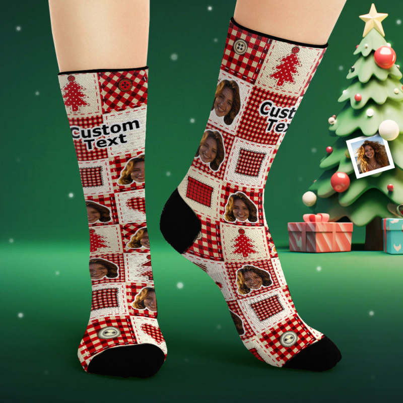 Custom Face Socks Personalised Photo Socks Christmas Plaid Pattern