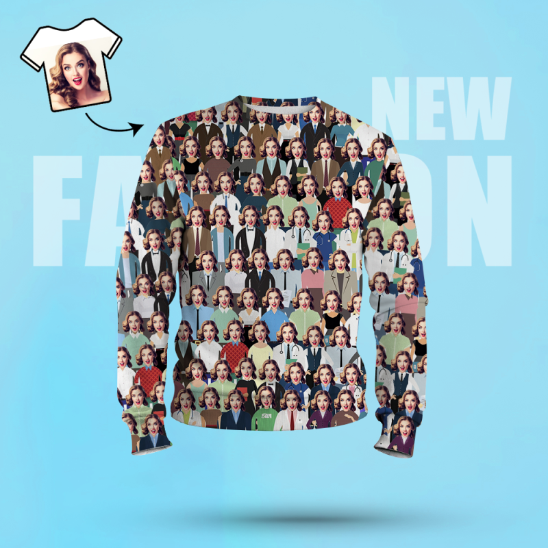 Custom Face Sweatshirt Casual Printed Photo Crewneck Shirt For Men Women. Unique gift for family, lover, friend or yourself.