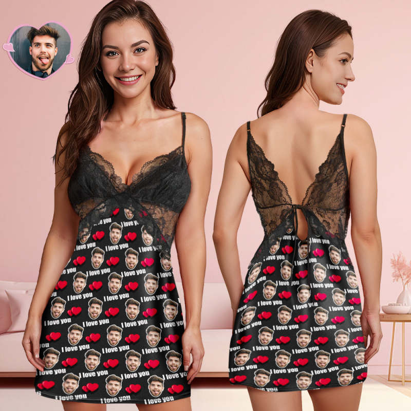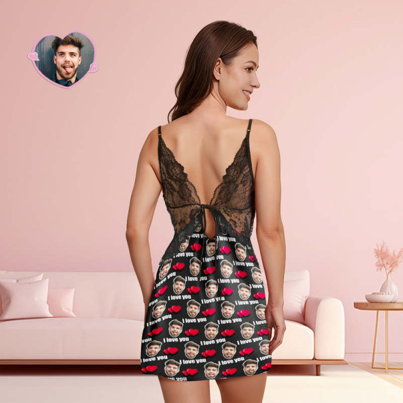 A uniquely personalized expression of love. Elevate bedtime with this enchanting nightwear featuring a back closure, V-neck design, and delicate lace detailing. The ability to customize your boyfriend or husband's face, making it a truly one-of-a-kind gift.