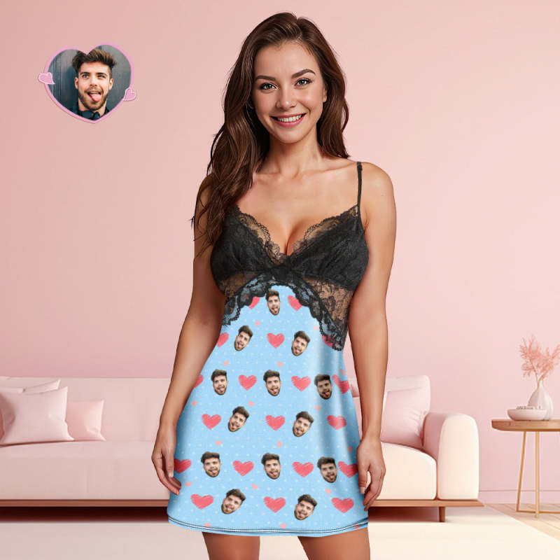 A uniquely personalized expression of love. Elevate bedtime with this enchanting nightwear featuring a back closure, V-neck design, and delicate lace detailing. The ability to customize your boyfriend or husband's face, making it a truly one-of-a-kind gift.