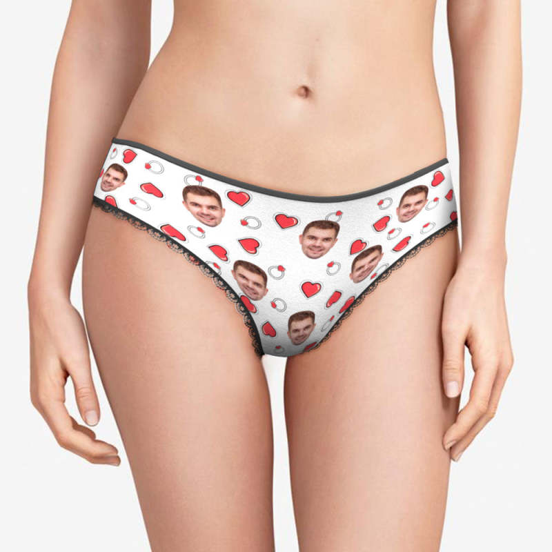 Home / Custom Face Women's Panties Personalised Photo Lingerie Heart And Ring Gifts For Her