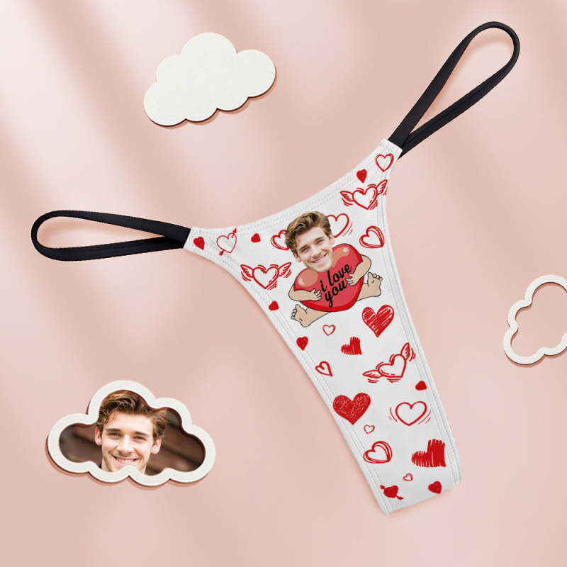 Custom Face Women's Tanga Thong I Love You With Hearts Funny Sweet Gift For Girlfriend
