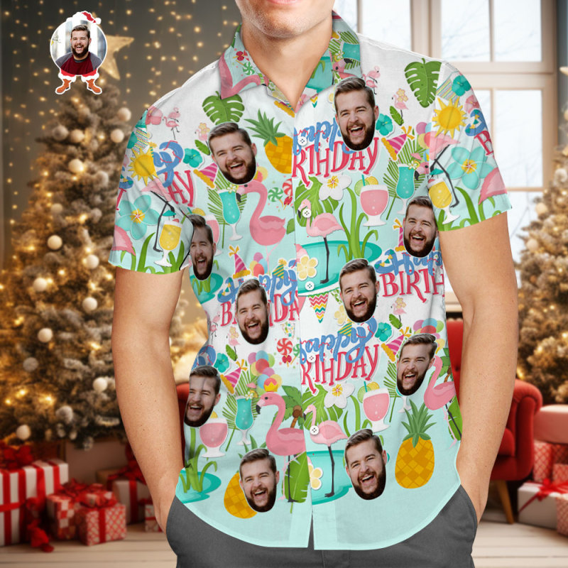 Home / Custom Happy Birthday Christmas Gift Hawaiian Shirt Flamingo Party Personalized Face Shirt