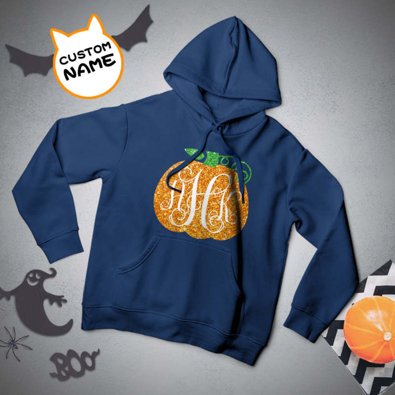 Home / Custom Hoodie Long Sleeve Pullover Men's Hoodie Sweatshirt with Text Halloween Gift - Golden Pumpkin