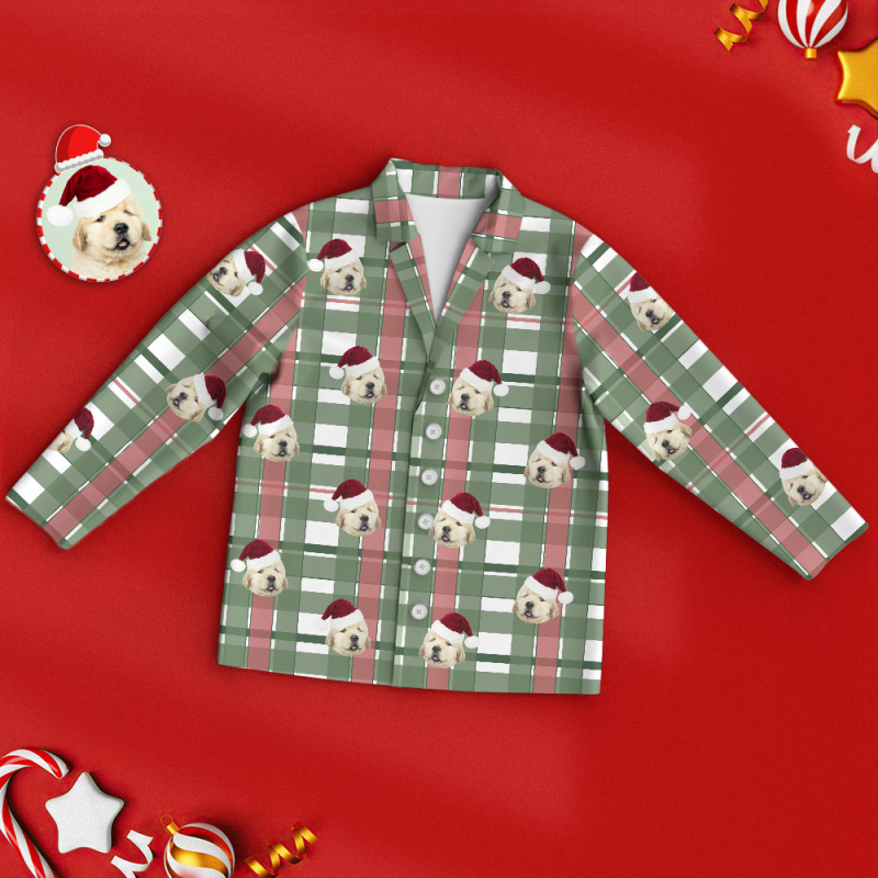 Custom Pet Face Pajamas Checkered Pet Pajamas Christmas Gift