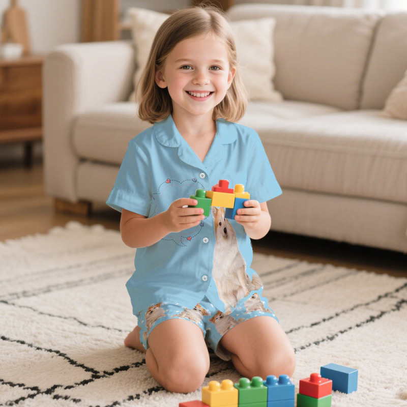 Custom Pet Photo Short Children Pajama Set Dog Cat Lover Pajamas