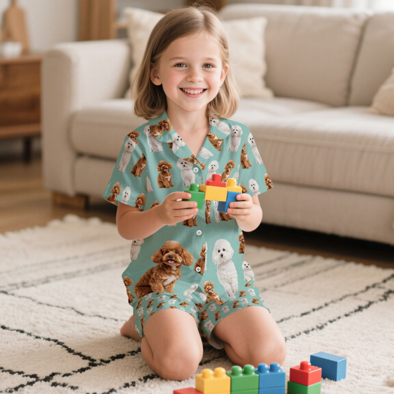 Custom Pet Photo Short Children Pajama Set Personalised V-neck Dog Cat Lover Pajamas