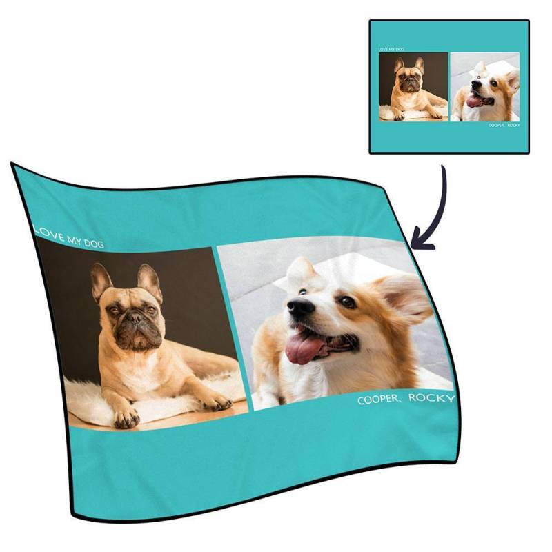 Custom Photo Blanket Fleece with Text - 2 Photos
