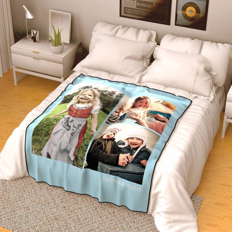 Home / Custom Photo Blanket Fleece with Text - 3 Photos
