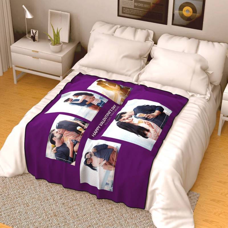 Custom Famliy Photo Fleece Blanket with Text - 5 Photos