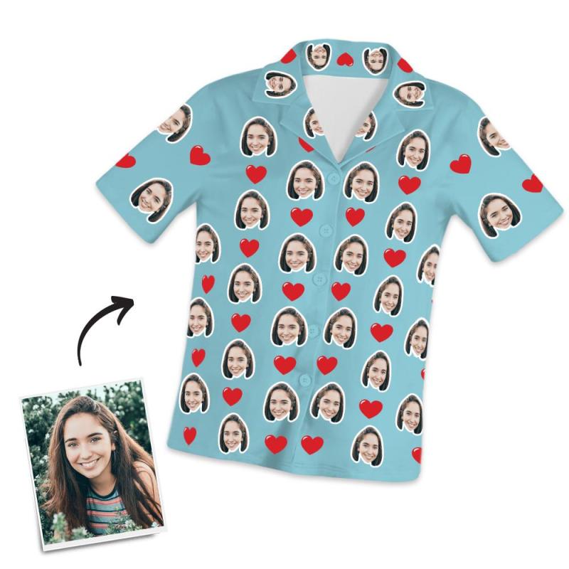 Custom Photo Short Sleeve Pajama Top, Nightwear, Sleepwear for her