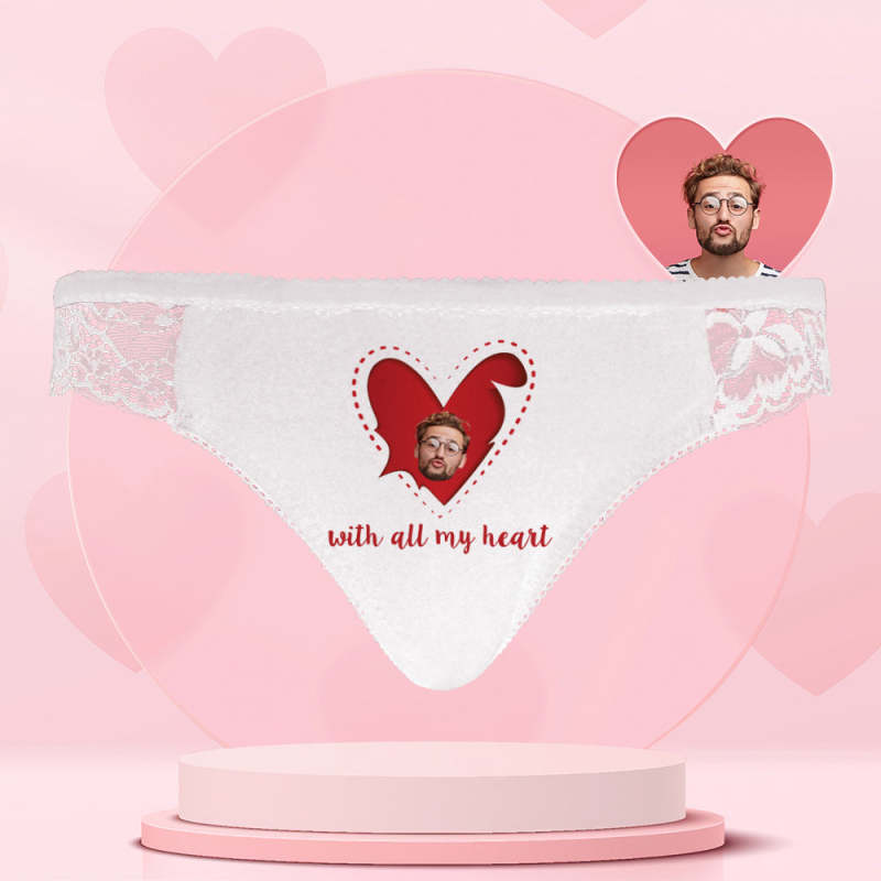 Custom Photo Women Lace Panty Sexy Panties Women's Underwear - Red Heart